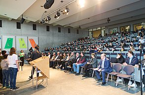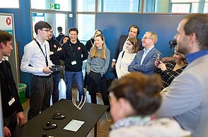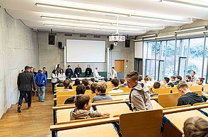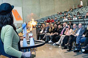 Am Freitag, 03. März 2023, war ab 9:00 Uhr die Öffentlichkeit herzlich dazu eingeladen, sich einen Einblick in die vielfältigen und spannenden Projekte zu verschaffen. Zahlreiche interessierte Schulklassen aus Pforzheim und der Region sowie Vertreter*innen der Politik und Wirtschaft waren vor Ort. Um 14:30 Uhr fand dann die feierliche Bekanntgabe der Preisträger*innen im Audimax der Hochschule Pforzheim statt.