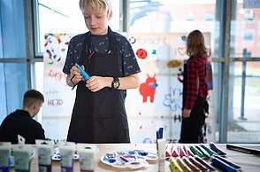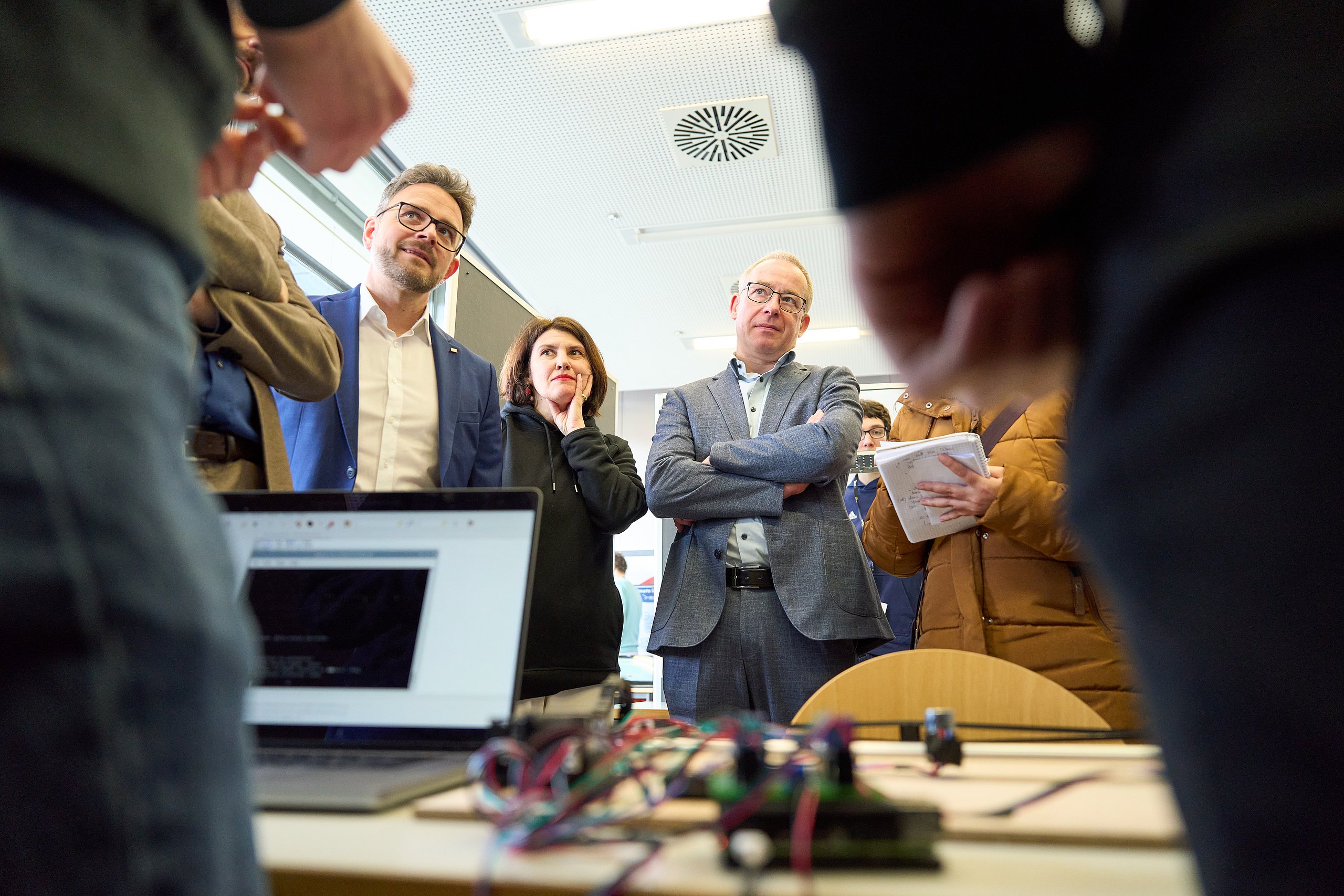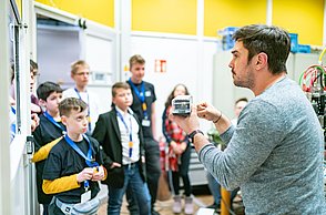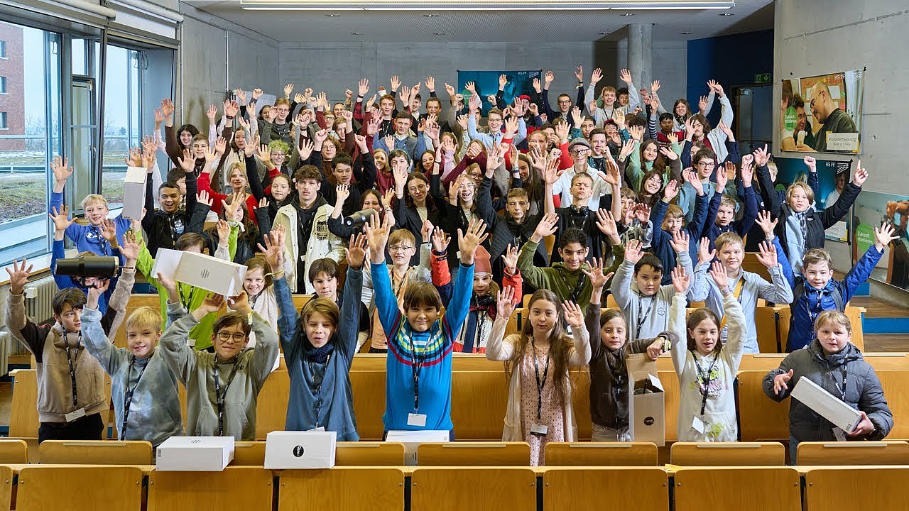Neben der Präsentation ihrer eigenen Projekte vor einer Fachjury erlebten die Jungforscherinnen und Jungforscher auch ein begleitendes Programm: Sie lernten unter anderem die Hochschullabore für „Mechatronik“ und „Künstliche Intelligenz“ kennen, erfuhren eine Führung und Fütterung durch den Wildpark und konnten an verschiedenen Workshops teilnehmen. Für viel Spaß sorgten eine Fotobox, ein Popcorn-Automat und ein Virtual-Reality-Erlebnisparcours der Witzenmann GmbH sowie die Möglichkeit, im „Atelier“ mit Pinsel, Acrylfarbe und Leinwand künstlerisch tätig zu werden.