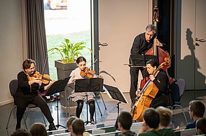 Aaron Osswald, Sebastian Thumm und Anna Zolohina vom Evangelisches Seminar Maulbronn