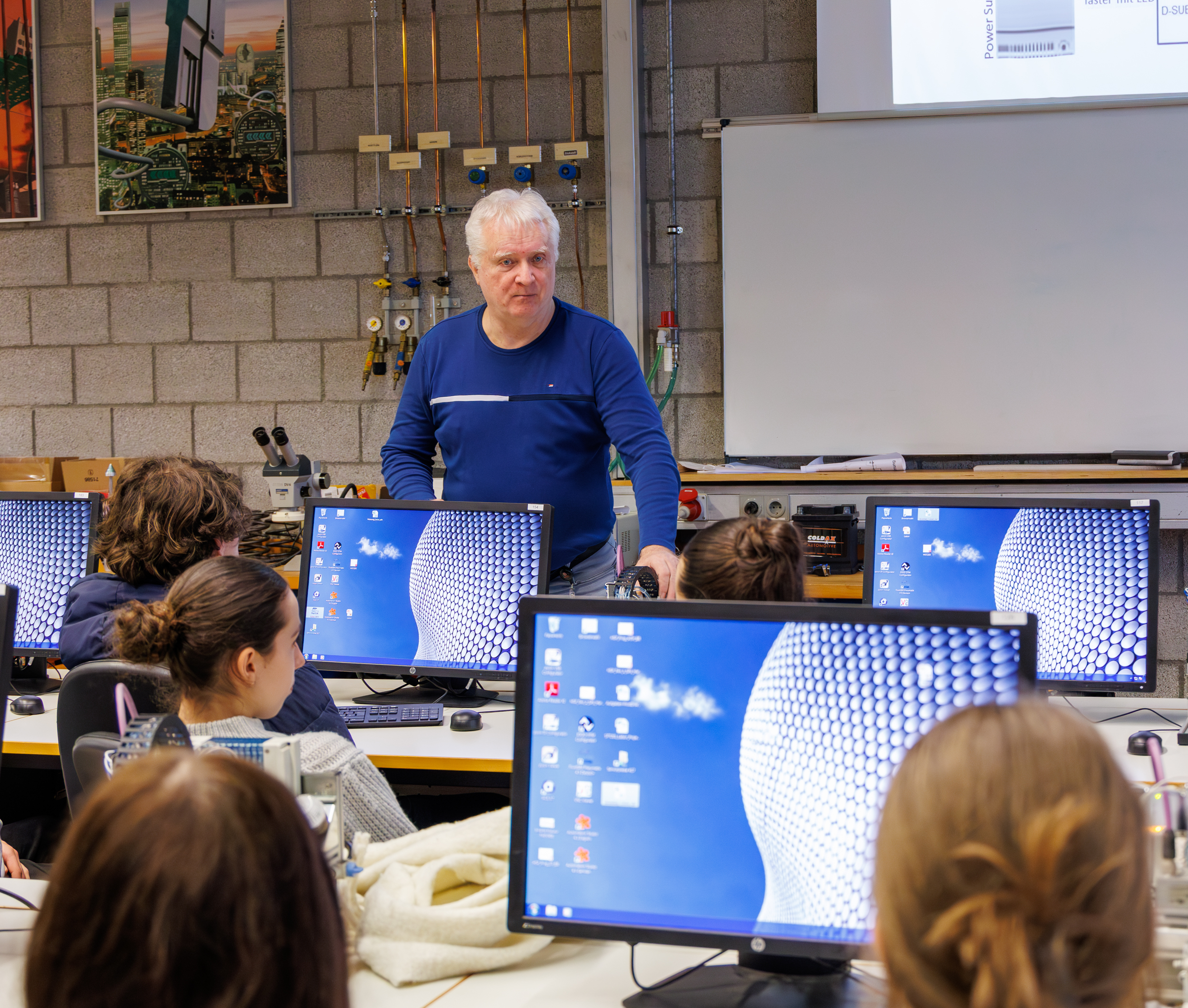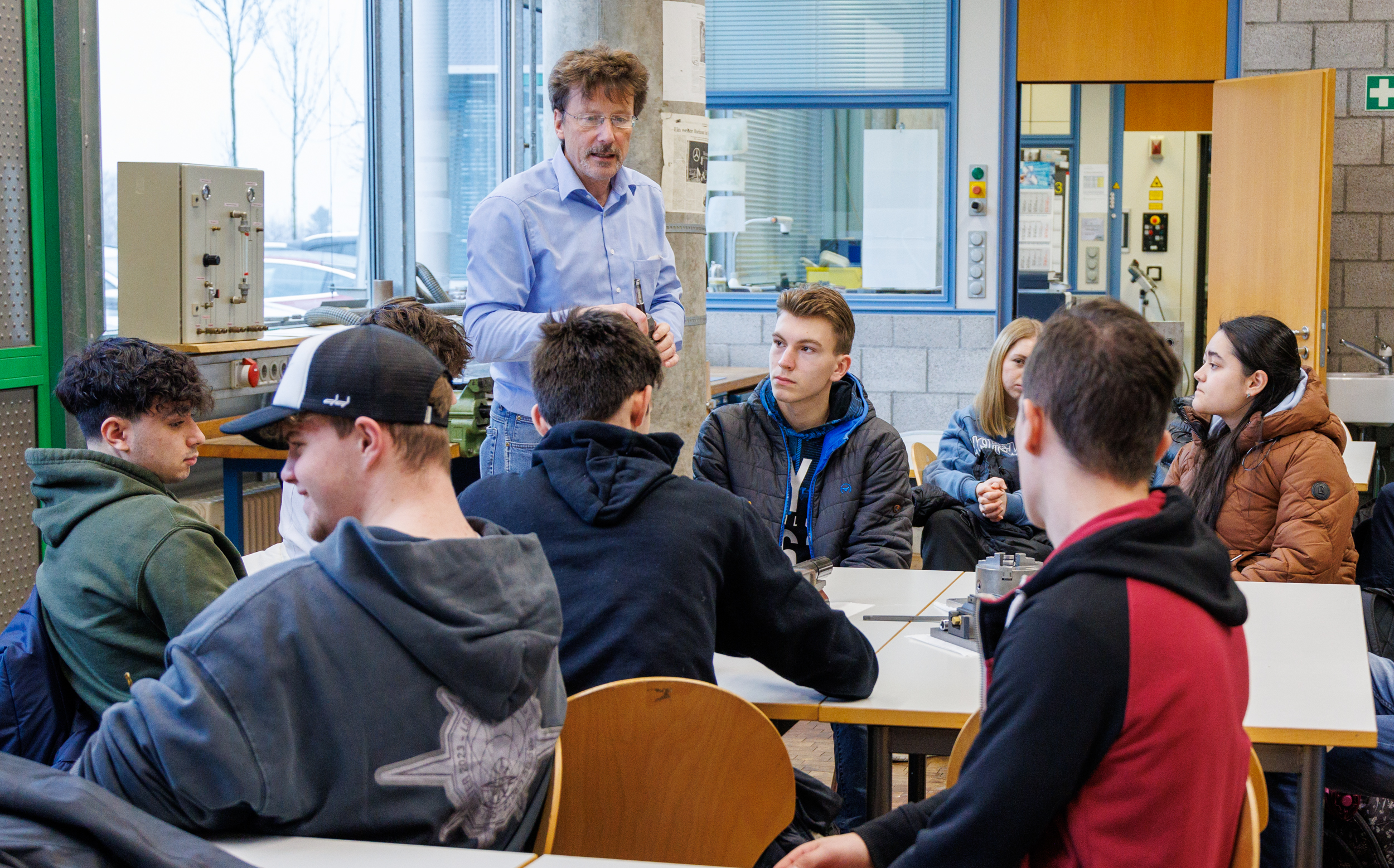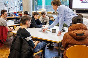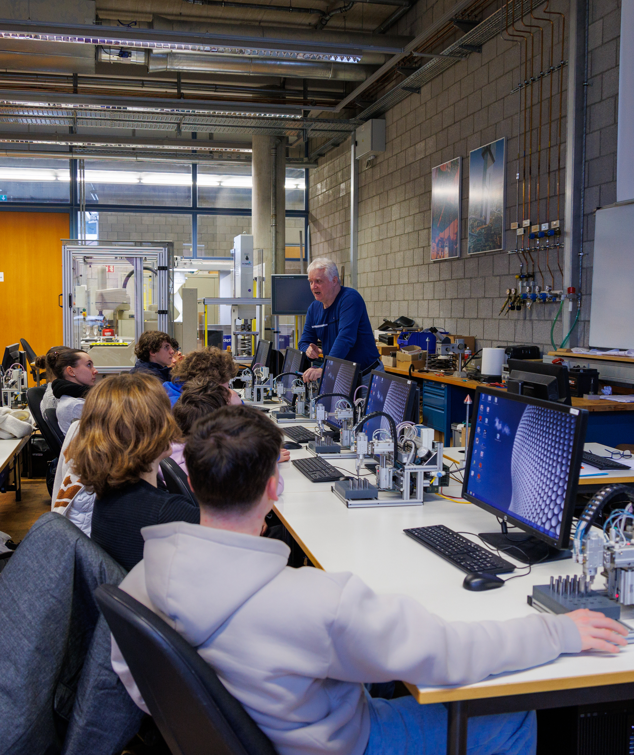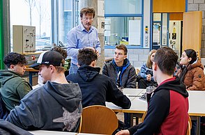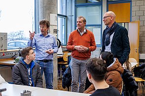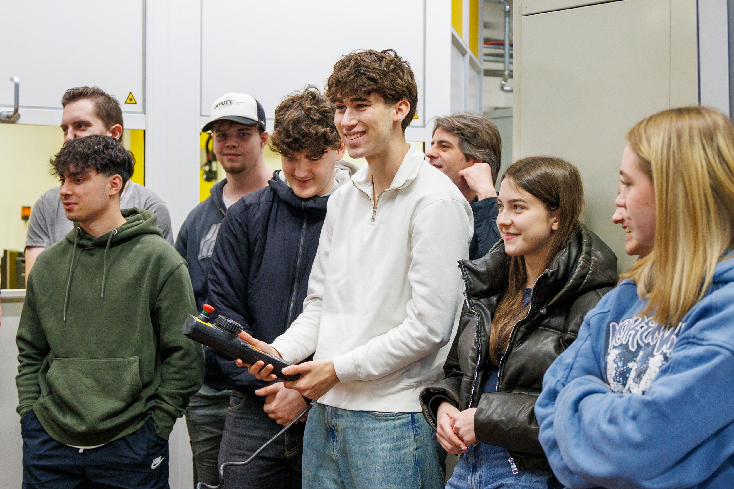 Die Labore fanden unter Anleitung der Laboringenieure Dietmar Eckhardt (CNC-Fräsen) und Konrad Knorrek (SPS) statt. Das Besondere an diesem Format ist die enge Zusammenarbeit und Abstimmung der Inhalte mit den Fachlehrer*innen der Schulen, in diesem Falle Silvan Palige sowie Rüdiger Schmedding.