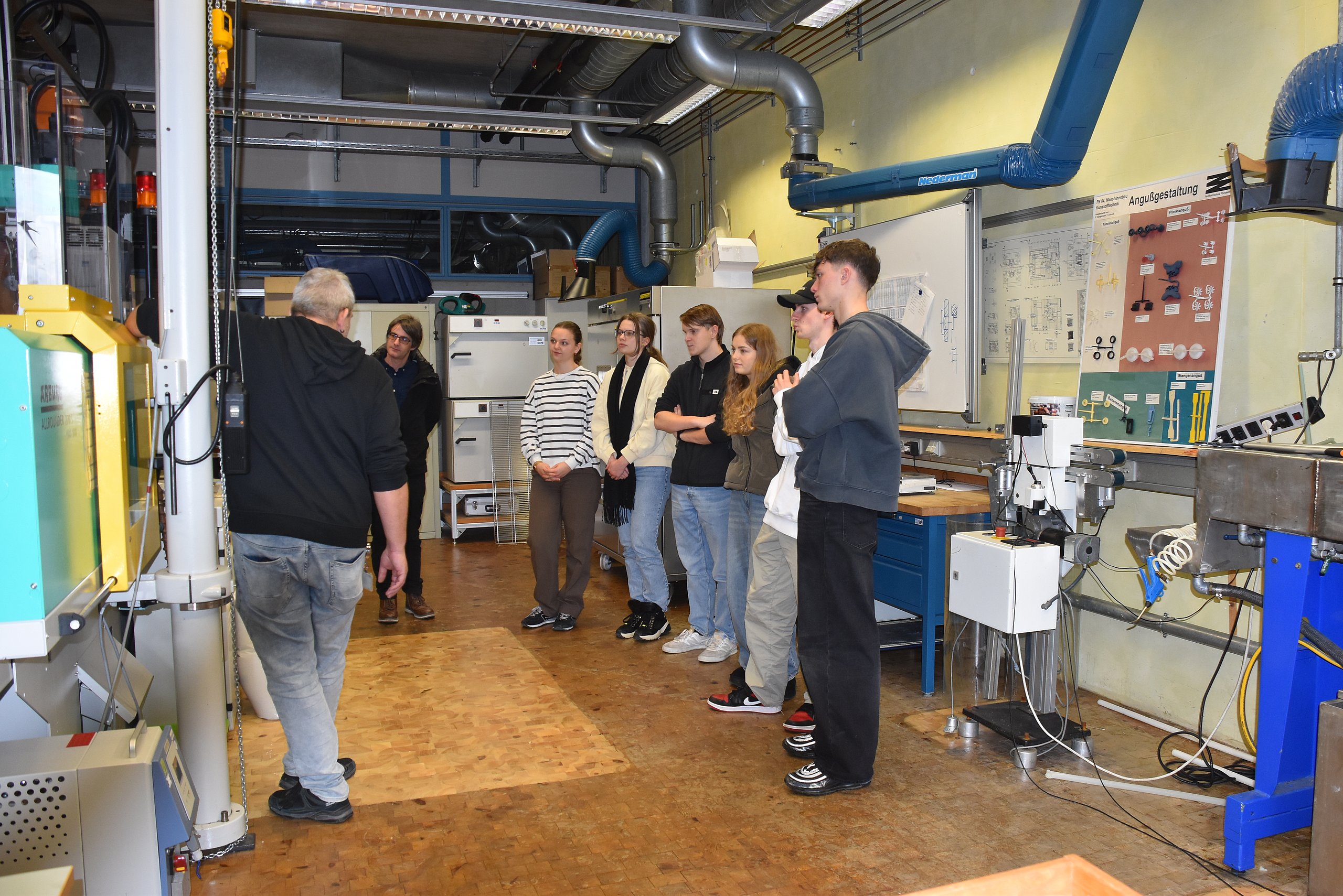 Der Chemie-Leistungskurs der Jahrgangsstufe J2 des Enztal-Gymnasiums aus Bad Wildbad besuchte am 19. Dezember 2023 die Schüler*innen-Labore „Fertigungstechnik-Spritzgießen – Vom Rohstoff zum Produkt“ und „Bauteilanalyse spritzgegossener Bauteile“ und fand auf diese und andere Fragen eine Antwort.