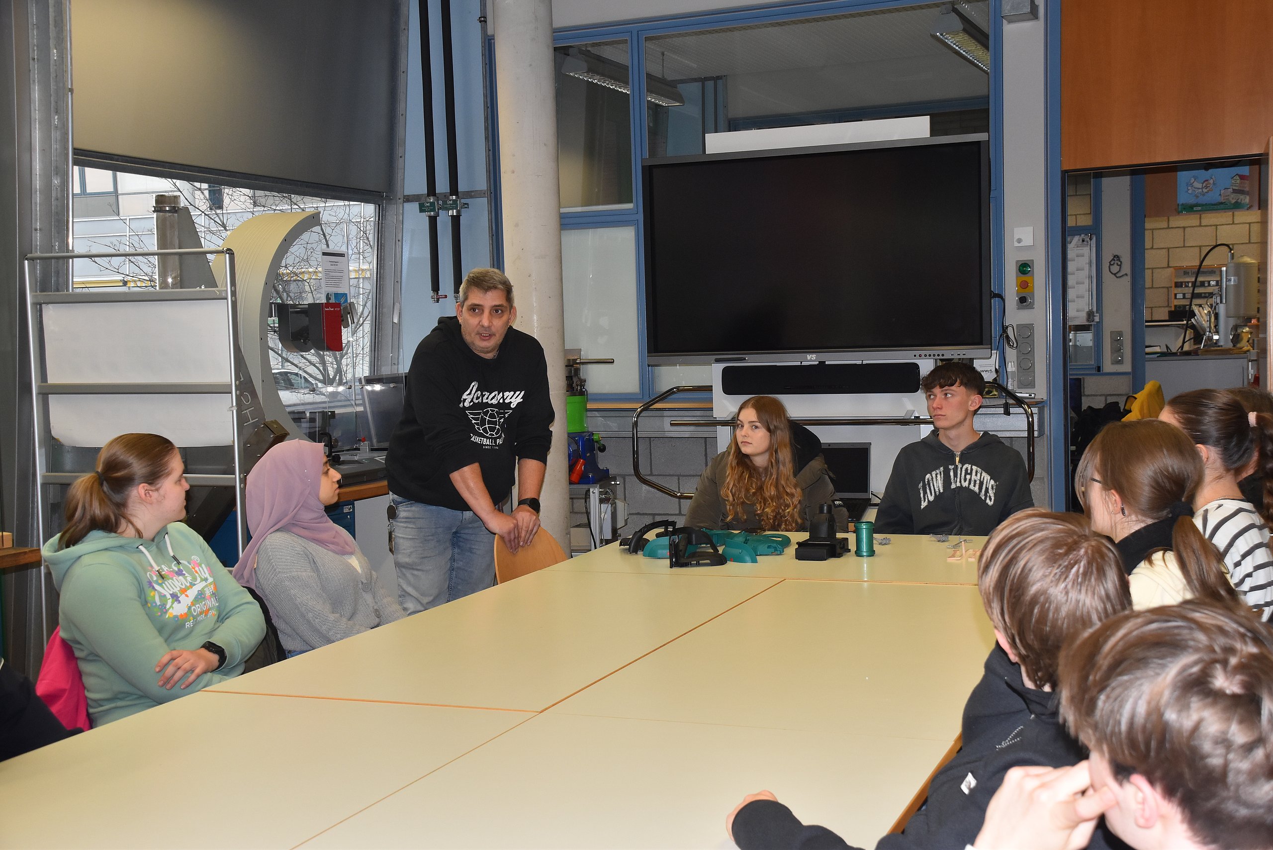 „Mit technisch interessierten jungen Menschen in Kontakt zu kommen und zwar schon so früh wie möglich, halten wie für sehr wichtig. Außerdem zeigen wir den angehenden Studierenden gerne, was wir an der Fakultät für Technik zu bieten haben“, so Oliver Hügel und Simon Kött, Laboringenieure der Labore für Fertigungstechnik und Werkstoffkunde.