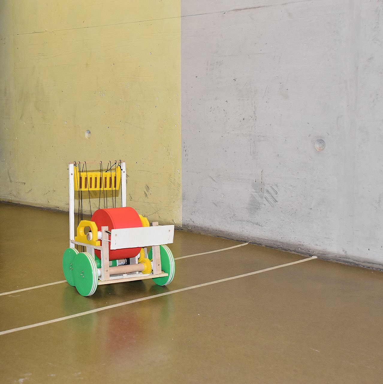 Im Wettbewerb standen die verschiedenen Konstruktionen und Umsetzungen eines Fahrzeuges, das beim Herunterfahren einer schiefen Ebene so viel Energie speichern kann, dass es am Umkehrpunkt mit dieser Energie die schiefe Ebene wieder hinauffahren kann. Die Konstruktionen zeichneten sich nicht nur durch eine handwerklich perfekte Umsetzung der Lösungsideen aus, sondern die Studierenden gaben in einer kurzen Präsentation Auskunft über die Konstruktion, die Vorgehensweise, das Design und die Methode, mit der sie ihre Vorrichtungen gebaut haben. Die studentischen Konstrukteur*innen hatten zum einen die Preisvorgabe von 40 Euro zu beachten. Zum anderen gab es Vorgaben, wie die notwendige Energie für die erfolgreiche Bewältigung der Bergfahrt gewonnen werden konnte. Unter anderem durfte das Fahrzeug nicht größer als 300 mm x 300 mm x 400 mm sein. Auch das Gewicht war auf drei Kilogramm begrenzt. Startfunktion und Umkehrmechanismus mussten mechanisch sein und es durften keine vorgefertigten Baugruppen verwendet werden. Der Materialwahl waren keine Grenzen gesetzt. Die 19 Teams hatten vier Monate Zeit, um mit Kreativität, methodischem Denken und Geschick eine Lösung zu finden und umzusetzen. Gewonnen hat das Team, das vom Wendepunkt aus die längste Strecke bergauf zurückgelegt hat. Dazu mussten 14,5 Meter bei einem Gefälle von 5° bis zum Wendepunkt zurückgelegt werden.