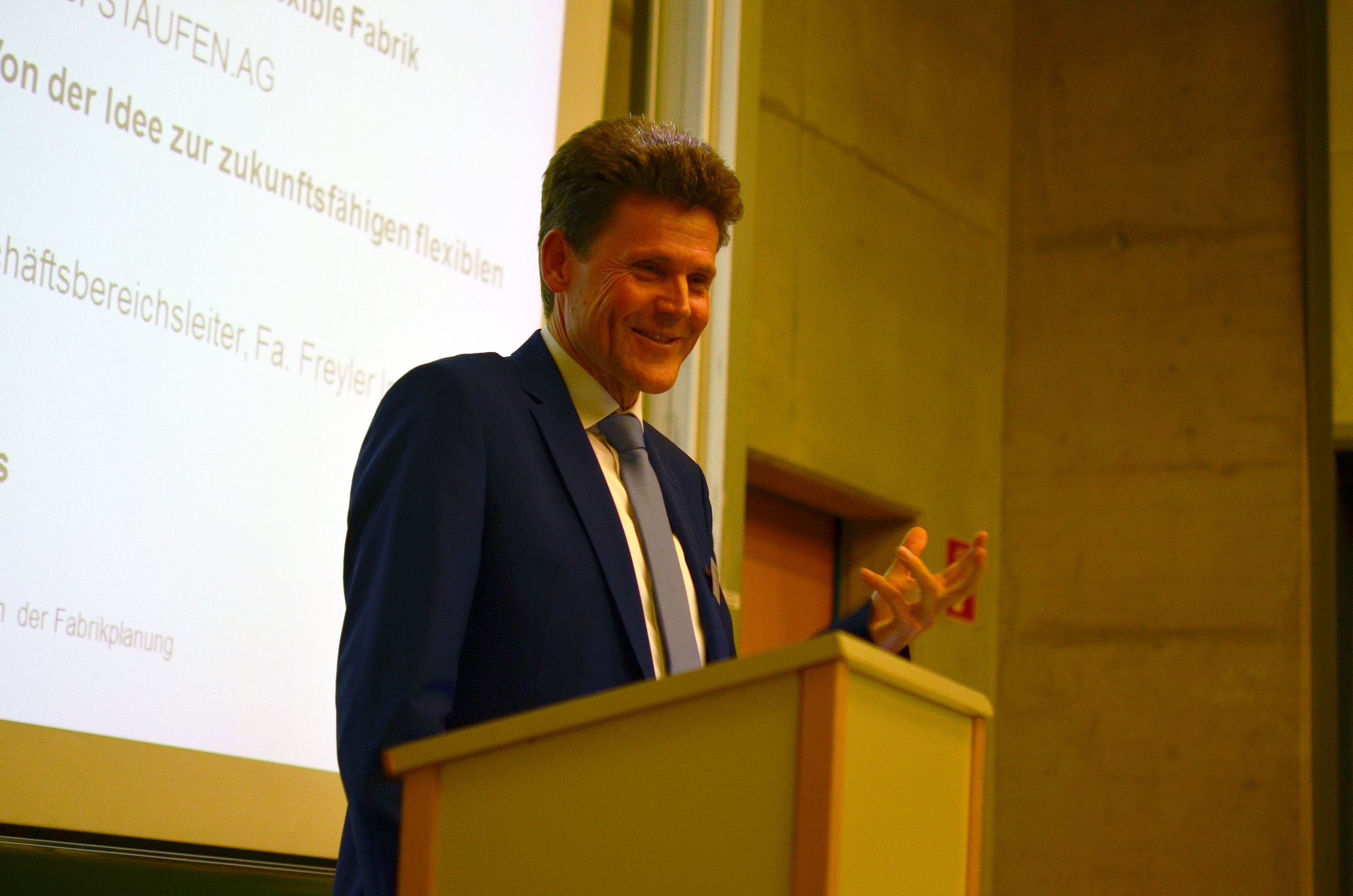 Die Vorgehensweise bei der Fabrikplanung hin zu einer wertstromorientierten flexiblen Fabrik erläuterten am Donnerstag, 6. Dezember 2018, Dipl.-Ing. Jürgen Endress (STAUFEN.AG) und Dipl.-Ing. Walter Löffler (Freyler Industriebau).
