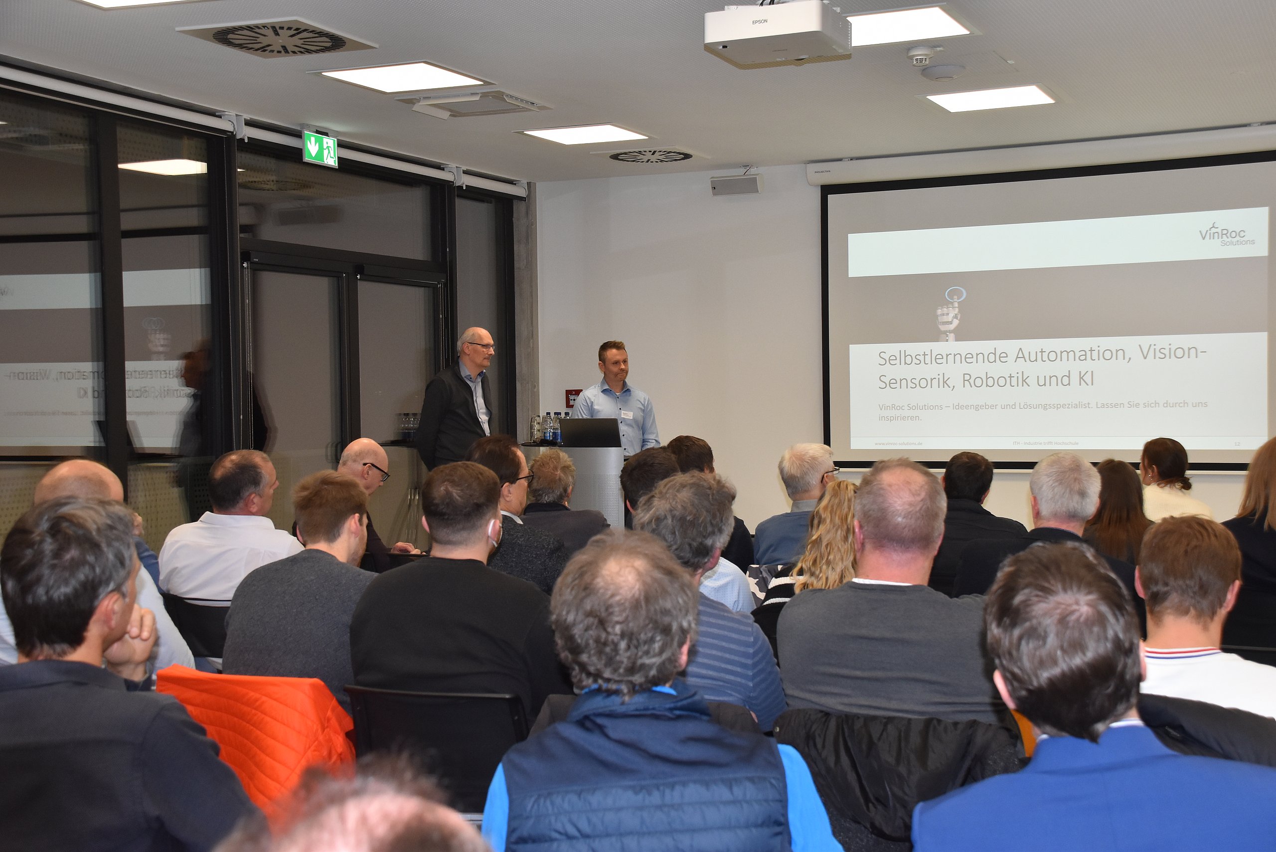 Markus Lehr, von VinRoc Solutions, stellte „KI-basierte Anwendungsfälle zur optischen Qualitätskontrolle“ vor. Das Unternehmen steht für Selbstlernende Automation, Vision-Sensorik, Robotik und KI und erarbeitet Optimierungskonzepte für Maschinen und Produktionsbereiche. Am Beispiel der optischen Qualitätskontrolle erläuterte Lehr wie durch geschickte Modellarchitektur und geeigneter Trainingsdaten ein generisches KI-Modell erstellt werden kann. Im Unterschied zur manuellen Qualitätskontrolle arbeitet die KI in gleichbleibender Genauigkeit und Geschwindigkeit, auch bei komplexen Analysen. „Mit der KI können Maschinen lernen und intelligente Entscheidungen treffen,“ so Lehr. „Wir müssen nicht immer wieder neue Arbeitsabläufe entwickeln, wenn sich das Produkt ändert. Die KI kann sich selbst anpassen und das in einem Bruchteil der bisherigen Aufwendungen.“