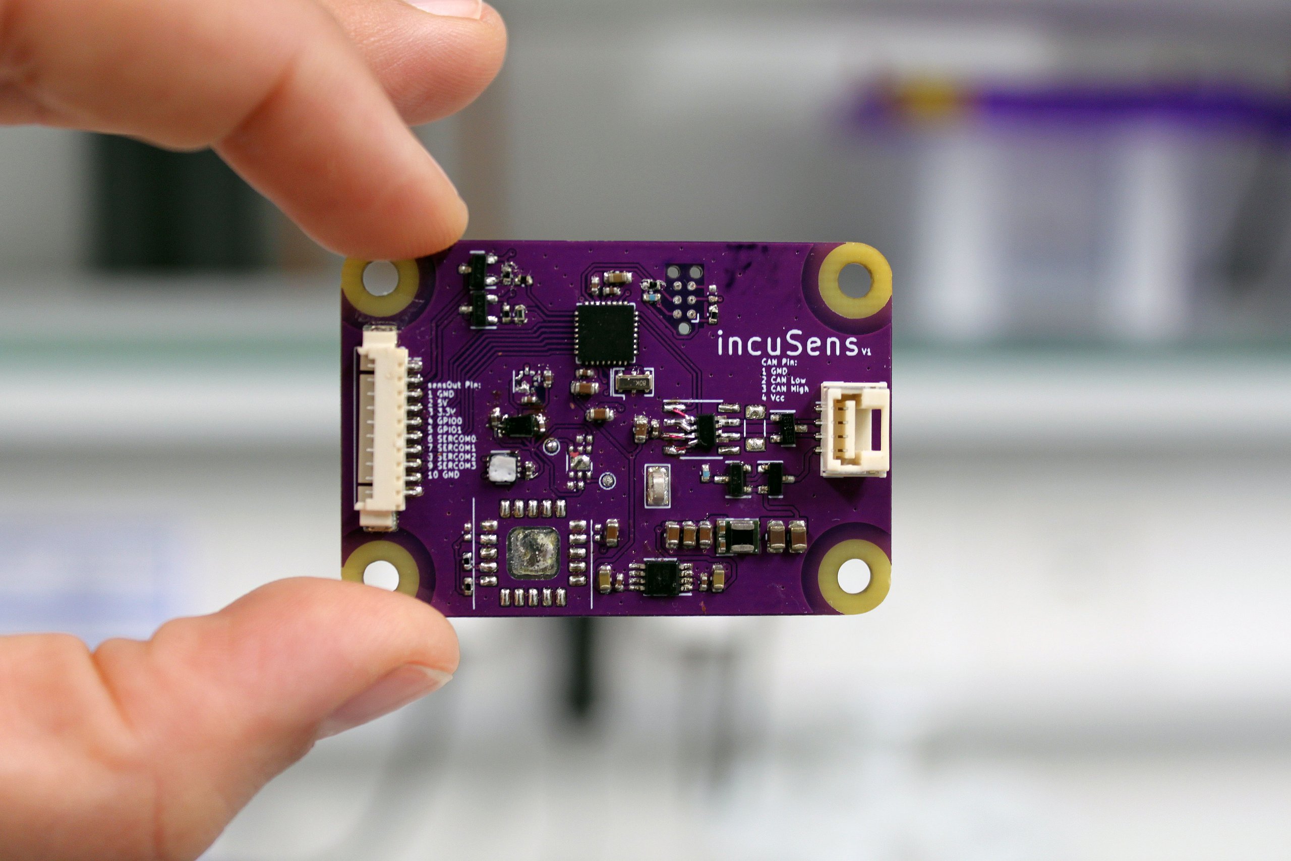 Neben einer Schnittstelle zum Inkubator beinhaltet Patrick Hanners System unter anderem eine von ihm entwickelte Hardware zur Messung verschiedener Umgebungsparameter wie z. B. der Temperatur. „Mein System ist in der Lage, eine Verbindung zu einem Server herzustellen, Daten in einer Datenbank zu speichern, sowie die Daten aufzubereiten und zu visualisieren“, gibt der Masterstudent einen vereinfachten Einblick in seine komplexe Arbeit. Sowohl die Software zur Kommunikation mit der Datenbank als auch die Firmware auf der Hardware entwickelte der Masterand selbst in der Programmiersprache C++. Das Projekt ist quelloffen auf der Plattform GitHub verfügbar.