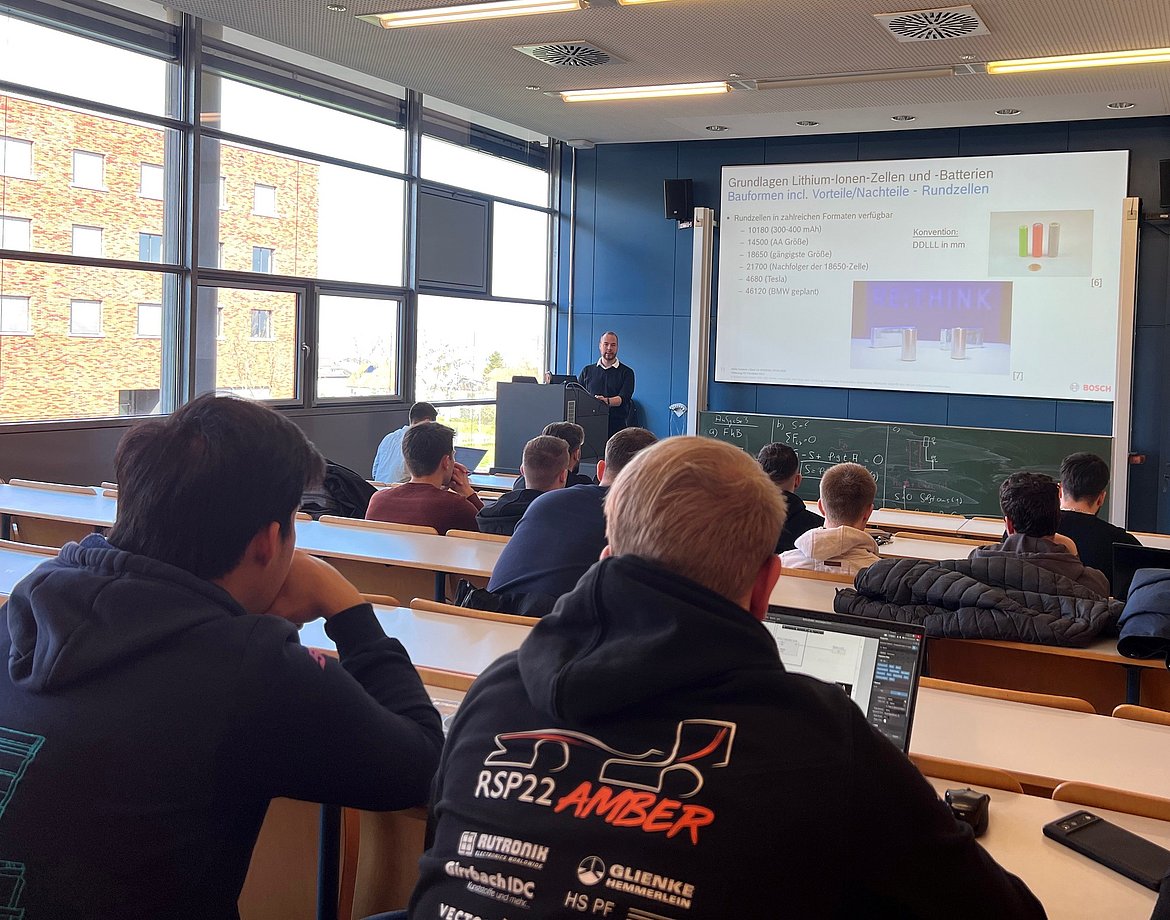 Die Themenfelder der Vorlesung beschränken sich nicht ausschließlich auf die Antriebstechnologie, sondern sie sind sehr viel breiter gefächert. Themen wie Leichtbauweise, Prüftechnik, Fahrdynamik und -sicherheit werden mit der Studierendengruppe intensiv besprochen. Die Zusammenarbeit mit Lehrbeauftragten, wie z.B. dem Batterieexperten Dr. Fabian Ebert von Bosch eBike Systems in Reutlingen, bringen die Studierenden ganz nah an die Praxis heran. Durch Exkursionen zu einschlägigen Firmen gewinnen die Studierenden Einblicke in die Entwicklung und erleben die praktische Anwendung der Lehrinhalte vor Ort.