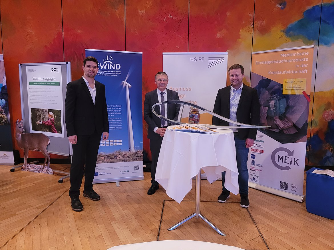 Am 10.01. war die Hochschule Pforzheim mit einem Infostand zu Gast beim Neujahrsempfang der Stadt im Congress Centrum Pforzheim (CCP). Mit dabei waren neben Rektor Dr. Ulrich Jautz und Dr. Jörg Woidasky, Professor für Nachhaltige Produktentwicklung, auch Paul Steiner, Projektmitarbeiter für das REWIND-Vorhaben, und für die Forschungsstelle Kreislaufwirtschaft im Gesundheitswesen Projektmitarbeiter Marcel Kern.