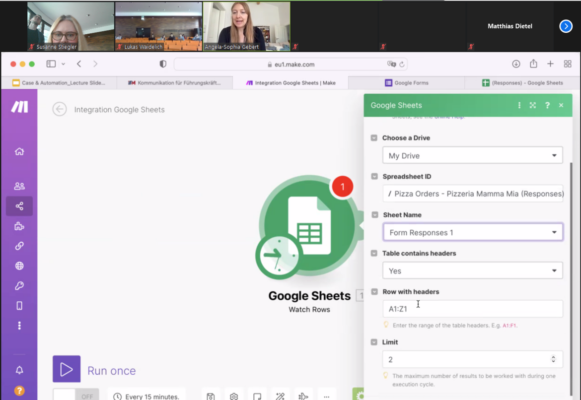 Studierende aus den Studiengängen Wirtschaftsinformatik und Wirtschaftsingenieurwesen wurden am 01. Juni 2022 von Angela Gebert zu einem dreistündigen Process Mining Workshop begrüßt. Im Mittelpunkt standen dieses Mal verschiedene Anwendungen von Celonis, dem Marktführer im Bereich Process Mining. Die ca. 30 Studierenden konnten wahweise vor Ort mit den Lehrbeauftragten Susanne Stiegler und Lukas Waidelich teilnehmen oder sich digital zuschalten – so wie die Celonis Workshopleiterin Angela Gebert oder der Lehrbeauftragte Matthias Dietel. Zuerst gab Frau Gebert eine initiale Hinführung zum Themenbereich Process Mining und stellte das Unternehmen Celonis sowie dessen aktuelle Anwendungen im Academic Bereich vor. Dabei konnten die Studierenden wertvolle Einblicke in die Anwendung erhalten und die gezeigten Schritte an ihren mobilen Geräten synchron nachmachen, um sich einen ersten Überblick zu verschaffen. Ferner wurde ein umfassender Process Minung Use-Case bearbeitet. In Celonis wurden drei separate Datentypen miteinander kombiniert und ein Datenmodell erzeugt. In Gruppenarbeit erarbeiteten die Studierenden verschiedene Visualisierungen und konnten so Insights über das fiktive Unternehmen gewinnen. Dabei zeigten sich schon erste Schwachstellen im untersuchten Prozess. Zudem identifizierten die Studierenden verschiedene Optimierungsmöglichkeiten. In einer weiteren Anwendung wurde neben dem Process Mining auch das Potential der Automation gezeigt. Mit dem Tool Make konnten die Schwachstellen direkt durch eine Prozessautomation behoben worden. Frau Gebert demonstrierte die Automation in der Session mit beeindruckenden Ergebnissen. Nach dem praktischen Teil nutzten die Studierende ihre Chance und stellten Angela Gebert einige Fragen rund um Celonis und die Zukunft von Process Mining. Im Nachgang zu dem Workshop haben die Studierenden noch die Möglichkeit ein Zertifikat zu erlangen. Alles in allem ein sehr erfolgreicher Workshoptag – wir freuen uns schon auf die nächste Interaktion mit Angela Gebert und Celonis!