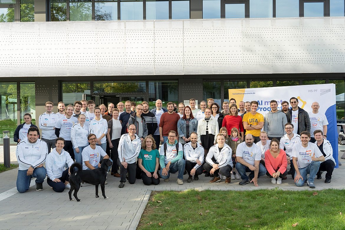 Nach den Smart City Days (04. bis 09.Oktober) und dem Process Mining Event (14. Oktober) fand das dritte Event im Rahmen des Monats der Innovation, der Hackathon AI meets Production, vom 21. bis 23. Oktober statt. Erstmals in der Historie der Pforzheimer Hackathons wurde das Format um einen zusätzlichen Tag auf drei Veranstaltungstage erweitert. Zugleich stellt die Anzahl an Partnern, Sponsoren und weiteren Unterstützenden einen neuen Rekord dar. Der zweite Hackathon mit dem Fokus auf künstliche Intelligenz (2019 fand der Hackathon zum Thema Fashion meets AI statt) folgte einem anderen Paradigma: Anstatt eigene Problemstellungen zu identifizieren und die daraus formulierten Challenges mittels KI-Ansätzen anzugehen, konnten im Vorfeld (regionale) Partner aus der (produzierenden) Industrie gewonnen werden, die in monatelanger interner Absprache konkrete Herausforderungen aus den Fachabteilungen identifizierten, dokumentierten und eine entsprechende Datenbasis aufbauen konnten. Somit konnten die teilnehmenden Teams echte Challenges aus dem unternehmerischen Kontext auf Datenbasis mit KI-Methoden bearbeiten.