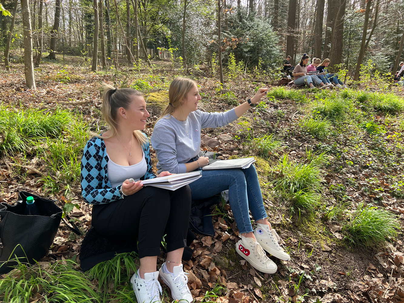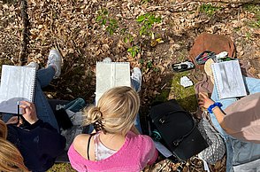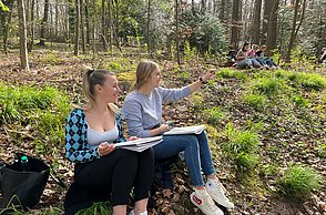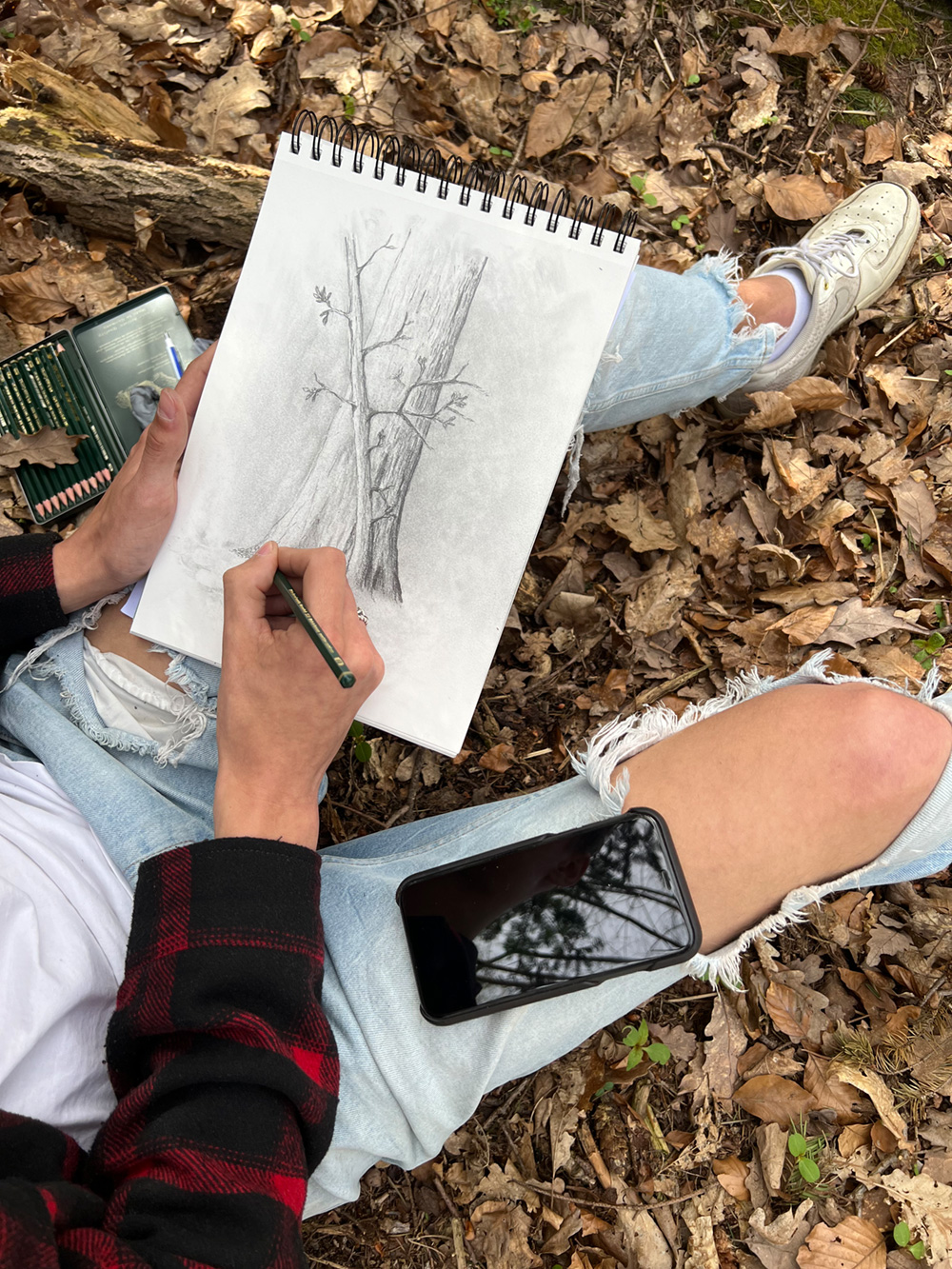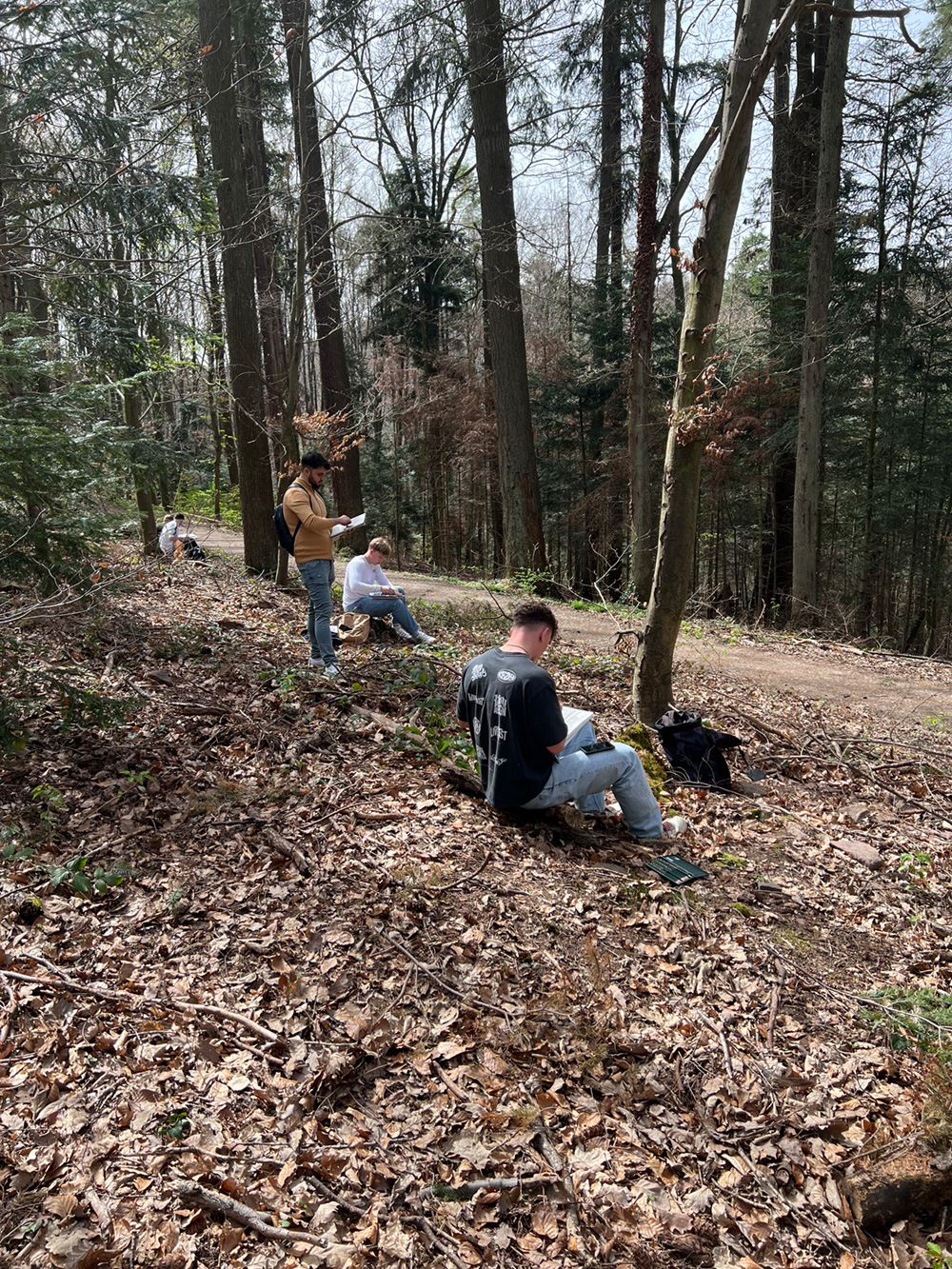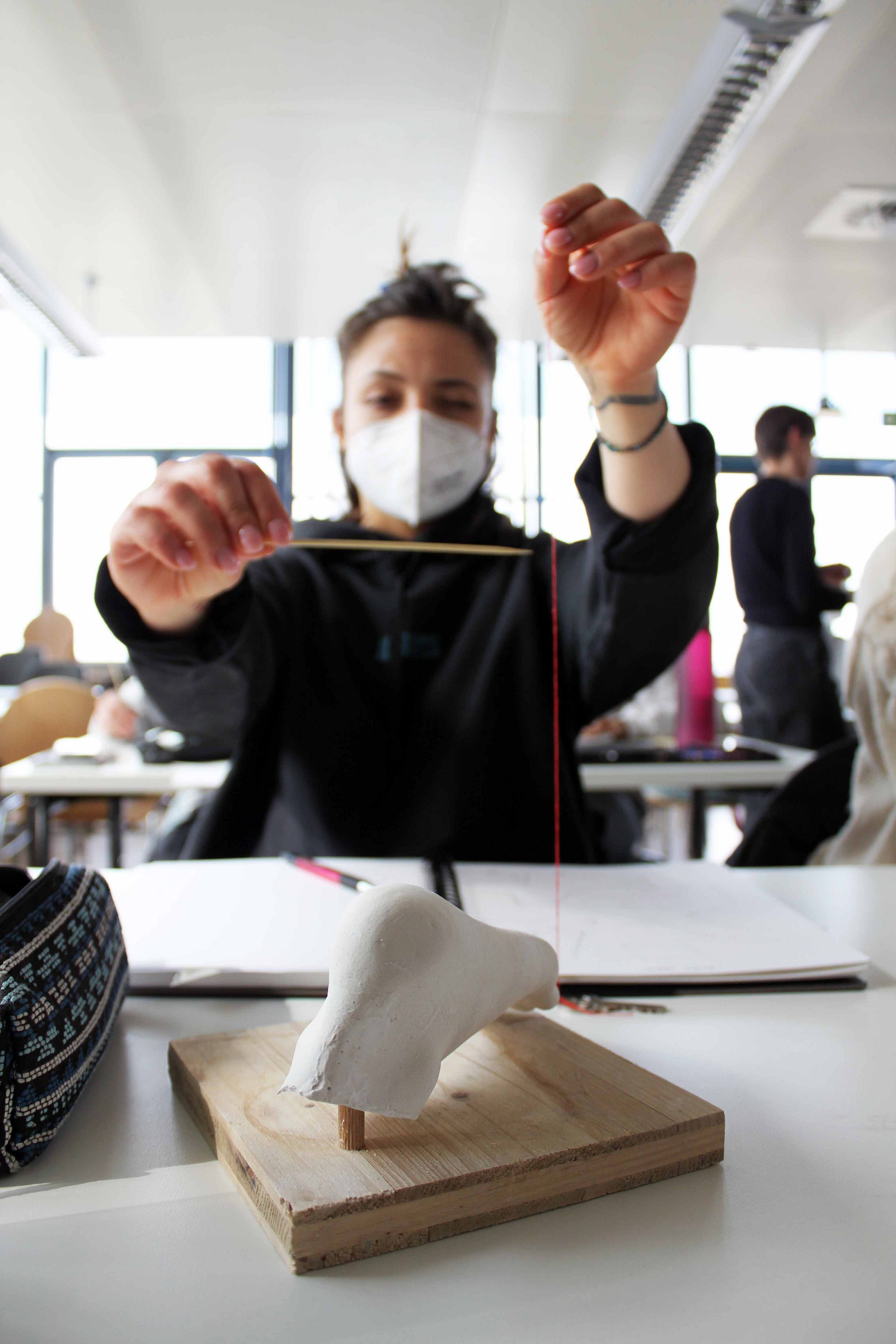 „Zeichnen ist relevant“, ist sich Stephanie Türck sicher. Ihr Zeichenkurs befähigt und ermutigt die Studierenden über die Schulung der Wahrnehmung, akademische Methoden und das freie Experiment zur visuellen Kommunikation eigener Ideen mit dem Stift. Grundlegende Zeichentechniken werden mit Fokus auf Kontur und Form, Licht und Schatten, Proportion, Perspektive und Komposition vermittelt und praktisch erprobt, die Studierenden dabei zu kreativen Lösungsstrategien animiert. Die Unterrichtseinheiten im Freihandzeichnen finden im Hörsaal, auf dem Außengelände der Hochschule und im nahe gelegenen Wald statt.