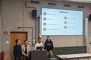 Seit dem Wintersemester 2022/2023 wird im Bereich Maschinenbau das Thema Wasserstofftechnologie durch Herrn Dr.-Ing. Thomas Andreas von der Unternehmensgruppe Rotarex im Rahmen einer Wahlfachvorlesung näher beleuchtet. Im Rahmen eines Workshops stellten Studierende nun ihre Ausarbeitungen zu Systemlösungen für ein autarkes Strom- und Wärmeversorgungskonzept für eine Neubauwohnsiedlung vor.