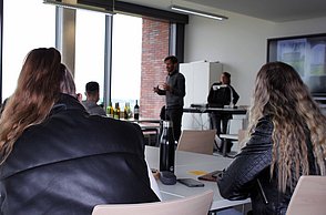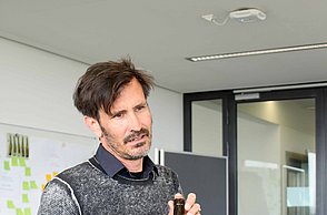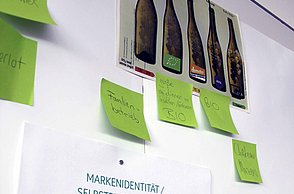 Über die Logogestaltung auf der Weinflasche alle wesensprägenden Merkmale der Marke kommunizieren – um diese Aufgabe zu bearbeiten, tauschen die angehenden Wirtschaftsingenieurinnen und -ingenieure Taschenrechner gegen Klebestift und Schere – und kreative Moodboards gegen Exceltabellen. Aufgeteilt in zehn Kleingruppen entwickeln sie sieben unterschiedliche Vorschläge einer Markenidentität – die sie nicht nur ihren Dozenten, sondern auch dem Kooperationspartner zum Abschluss der Lehrveranstaltung Ende Juni präsentieren werden. Konkrete Aufgaben der Studierenden sind unter anderem die Recherche der Anspruchsgruppen und das Erstellen eines umfassenden Briefings in Form einer Mindmap als Ausgangspunkt für den Gestaltungsprozess. Auf Basis dieser Hintergründe entwickeln sie das Corporate Design bestehend aus Logo und Styleguide. „Beim Logo soll die alte Schriftmarke in einen modernen Kontext überführt und um eine Bildmarke ergänzt werden. Im Styleguide definieren sie die Gestaltungselemente, wie Farben oder Typographie, die für ihr Design wichtig sind und die in der Kommunikation benutzt werden sollen“, gibt Sandra Ewald einen Einblick. Sandra Ewald und Patrick Staehle leiten gemeinsam das „studio-et“, eine Agentur mit Sitz in Stuttgart und Bordeaux zur Begleitung gestaltungsorientierter Prozesse.