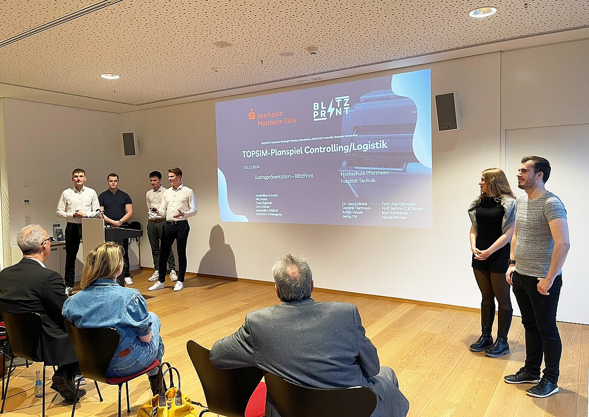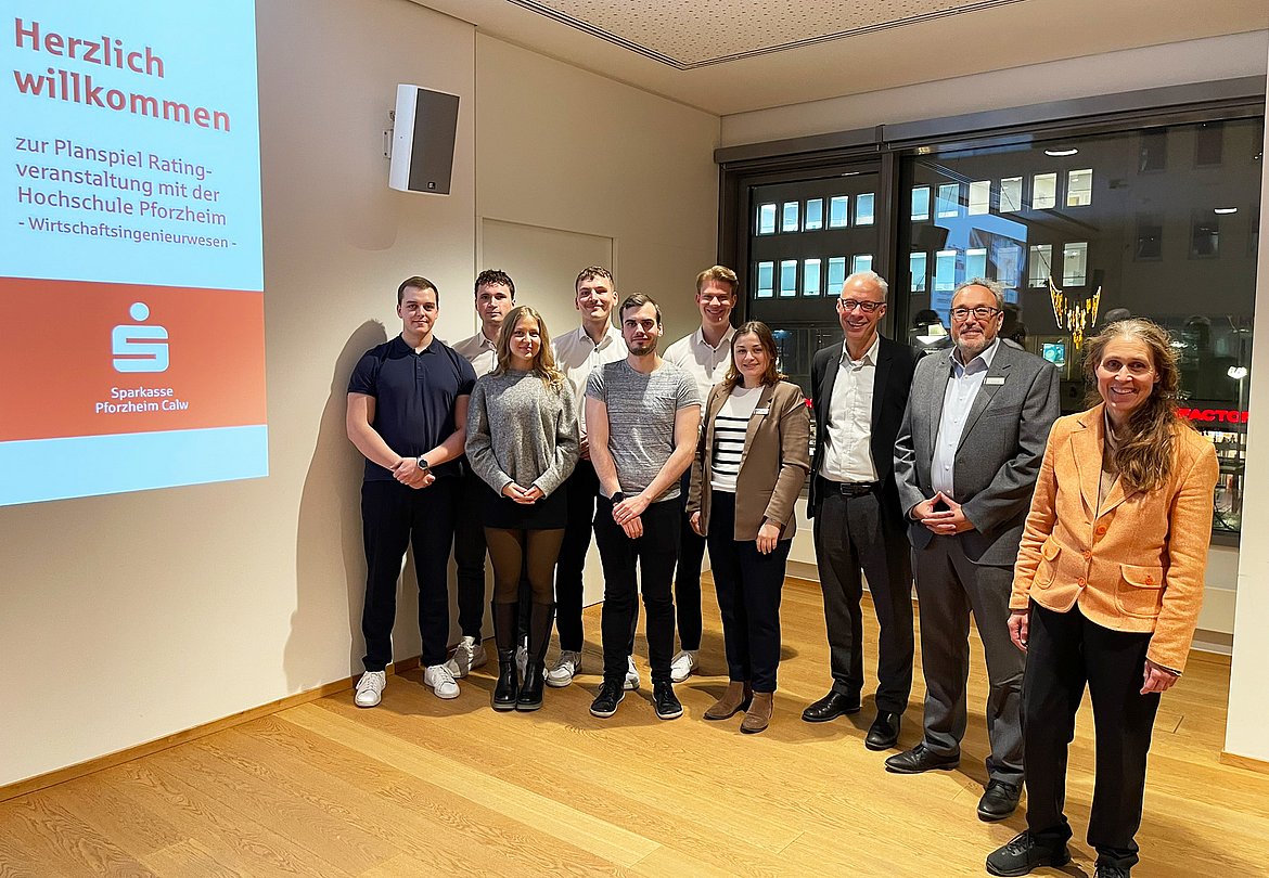 Welches Potenzial steckt in einem Unternehmen, seinen Produkten und der Vermarktungsstrategie? Wieviel Geld würde eine Bank in Form eines Kredits für eine notwendige Investition zur Verfügung stellen? Und nach welchen Kriterien wird diese Entscheidung getroffen? Um eine clevere Unternehmensstrategie zu entwickeln sind Kenntnisse aus den Bereichen Strategisches Management, Controlling und Logistik gefragt. Studierende des Wirtschaftsingenieurwesens aus dem 7. Semester erhielten Anfang Dezember die Möglichkeit ihr theoretisches Wissen in der Praxis unter Beweis zu stellen. Bei der seit vielen Jahren stattfindenden Rating-Veranstaltung in Zusammenarbeit mit der Sparkasse Pforzheim Calw präsentierten sie ihre Ergebnisse aus dem Unternehmensplanspiel. In diesem praxisnahen Format führen die Studierenden ein fiktives Unternehmen und wenden dabei ihr interdisziplinäres Wissen an. Ihr Ergebnis ließen sie dann von den Finanzexperten auf dessen potentielle Kreditwürdigkeit nach den internen Rating-Kriterien der Bank prüfen.