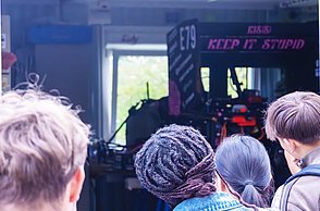 Ein Highlight für viele: Der Besuch bei der Rennschmiede, wo Studierende ihr selbst entwickeltes Fahrzeug präsentierten und zeigten, wie technische Präzision, Leidenschaft und Teamarbeit zusammenkommen.