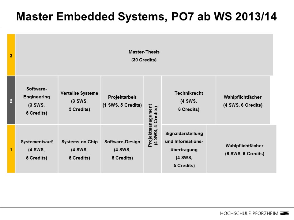 Im Bereich "Wahlpflichtmodul" besteht - in Absprache mit dem Studiendekan des Masterstudiengangs Embedded Systems - die Möglichkeit, aus dem Angebot der Master-Studiengänge der Fakultät für Technik oder der Fakultät für Wirtschaft und Recht Wahlfächer zu wählen bzw. Studienleistungen im Gesamtumfang von 15 Credits zu erbringen.