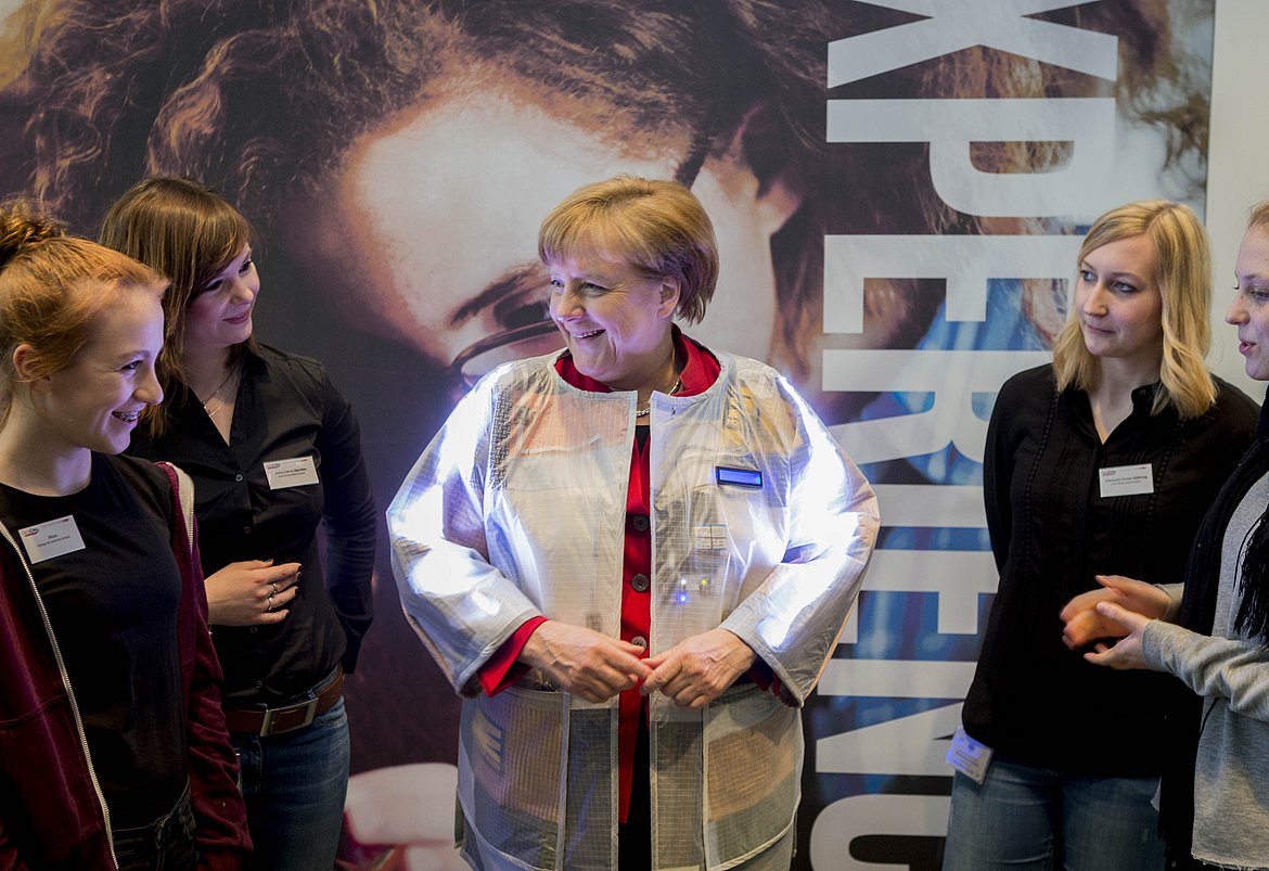 Diese Chance bot sich zwei Studentinnen der Fakultät für Technik der Hochschule Pforzheim. Im Rahmen des Girls'Day präsentierten Alexandra Göhring und Anna-Carina Spindler am Mittwoch, 27. April 2016, im Berliner Bundeskanzleramt das Technik-Projekt „Intelligente Jacke“ – vor Schülerinnen und Bundeskanzlerin Angela Merkel höchstpersönlich.
