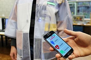 Drei Monate tüftelten Studierende verschiedener Fachrichtungen an einer Jacke, die mehr kann, als vor Kälte und Regen zu schützen. Via Bluetooth, der Datenübertragung zwischen Geräten über kurze Distanz per Funktechnik, kann das Kleidungsstück mit einer von den Studierenden selbst programmierten Smartphone-App verbunden werden. „Unsere App enthält die Bereiche Kommunikation, Sicherheit und Gesundheit“, erklärt Projektleiterin Alexandra Göhring.