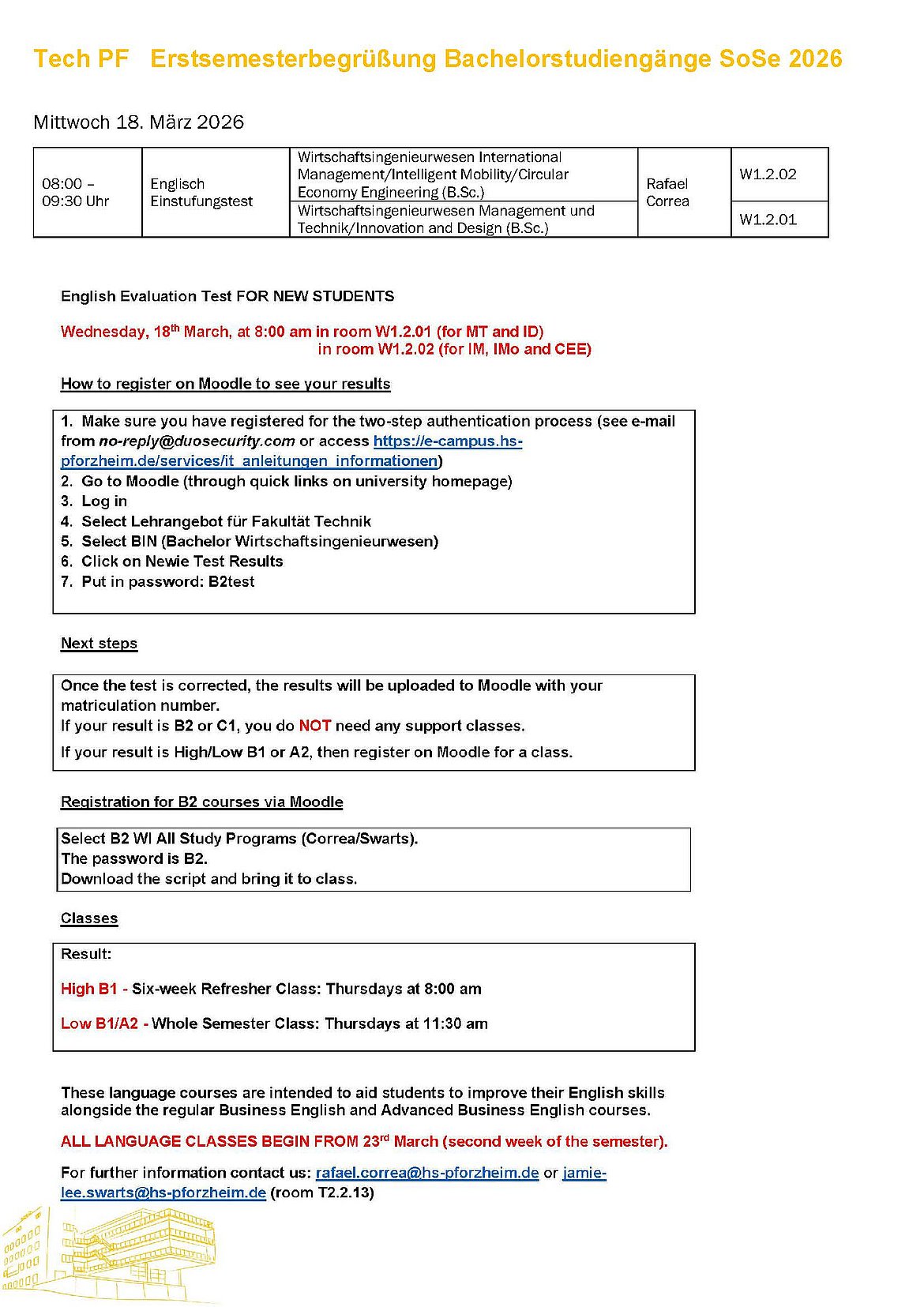 Der Englisch-Einstufungstest zum Sommersemester 2026 für die Studiengänge