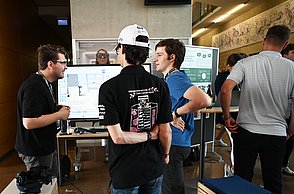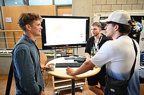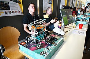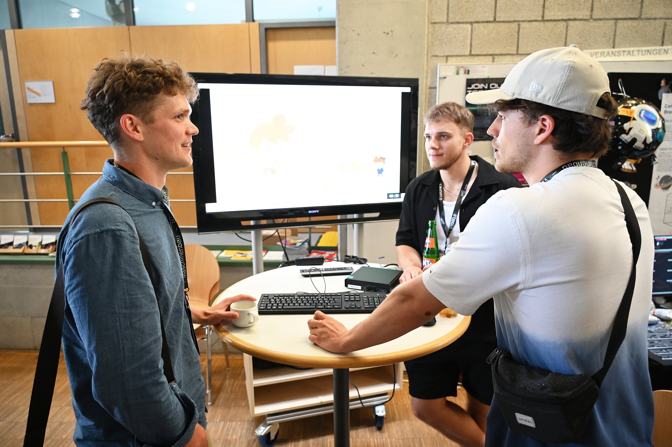 Neugierige Besucher*innen, Studierende, Firmenvertreter und Studieninteressierte hatten die Gelegenheit Fragen zu stellen und hinter die Kulissen des Studiums zu blicken. Alles hands-on, alles direkt aus dem echten Studienalltag. Man spürte sofort: Hier wird nicht nur gelernt – hier wird gebaut, programmiert, getestet, verworfen, nochmal gebaut und am Ende stolz präsentiert.