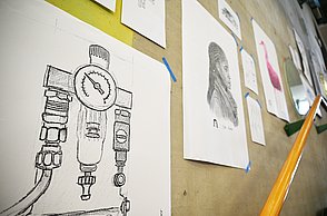 Neben Postern, Präsentationen und digitalen Darstellungen von Projekten, konnten die Studierenden auch während verschiedener Challenges ihre Arbeiten darstellen. Wichtig war hierbei, dass der Spaß nicht zu kurz kam und der ein oder andere ist sogar mit einem Preis belohnt worden. Mut zum Stift bewiesen die Studierenden, die ihre Werke in einer Vernissage ausstellten, und so zeigten, dass Zeichnen der Motor für Innnovation ist.