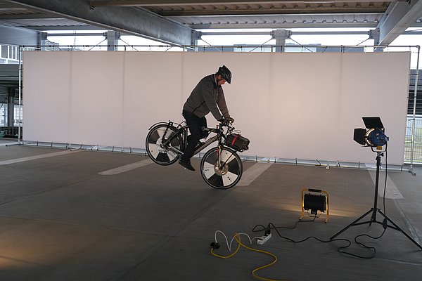 Zum Video: E-Bike-Versuchsträger mit Stützkonstruktion für ABS-Versuche