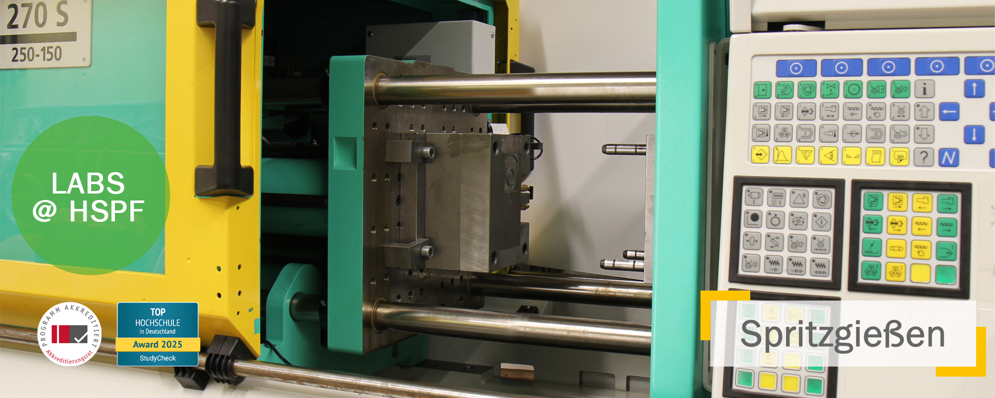 Inhalte des Labors | Beschreibung des Spritzgussprozesses und wie aus dem Rohstoff ein Produkt entsteht. Visualisierung des Prozesses an einem realen Bau-teil und der Spritzgussanlage. Ermittlung produktions- und qualitätsrelevanter Parameter in empirischen Versuchen. Optimierung des Prozesses und Diskussion. Problem Recycling von Kunststoffen. Sensibilisierung und Herausforderungen. |