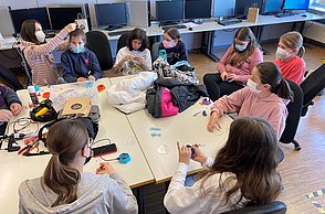 Die Hochschule Pforzheim freut sich, jedes Jahr wissbegierige Schülerinnen ab der 5. Klasse für technische Themen zu begeistern. Am Girls'Day laden wir Mädchen regelmäßig dazu ein, zu experimentieren, zu forschen und mit ihren eigenen Händen kleine technische Objekte zu bauen und auszuprobieren. So lernen sie spielerisch, sich mit Ingenieursthemen zu beschäftigen und gewinnen Zutrauen in die persönlichen Fähigkeiten. Ziel ist es, jungen Mädchen neue Perspektiven im Hinblick auf technische Berufe zu eröffnen. Der Girls‘ Day wird seit 20 Jahren bundesweit veranstaltet und steht unter dem Motto „Ein Mädchen-Zukunftstag“. Auch in diesem Jahr, am 28. April 2022, boten die Bereiche Informationstechnik, Maschinenbau sowie Wirtschaftsingenieurwesen der Fakultät für Technik jeweils Führungen, Workshops und Vorlesungen für die Teilnehmerinnen an.