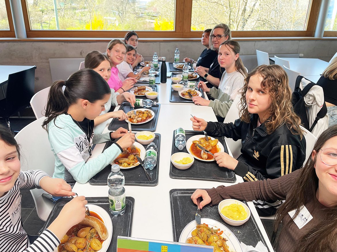 Dank der finanziellen Unterstützung der Beauftragten für Chancengleichheit und Gleichstellung der Hochschule Pforzheim konnten sich die Schülerinnen nach den Workshops alle zusammen bei einem Mittagessen treffen, ihre Erlebnisse austauschen und neue Kontakte knüpfen.